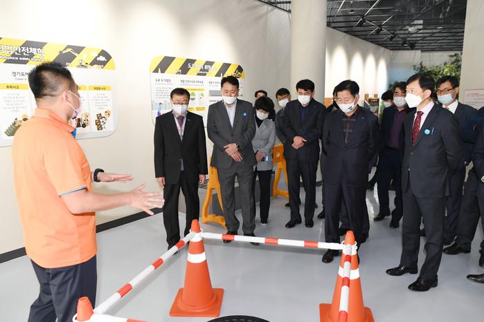 27일 경기 양주시가 7일 광적면 생활체육공원 내 조성된 경기도 내 첫 안전체험시설인 ‘경기도교육청 안전교육관’을 방문했다. 사진은 조학수 부시장, 관계 공무원들이 현장을 살피고 있는 모습. (사진제공=양주시청)