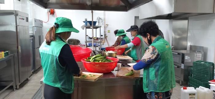경기 이천시 마장면새마을남녀지도자협의회는 최근 마장면 이치리 일대에 들깨심기 행사 및 환경 정화활동을 진행하고, 이어 밑반찬 나눔 봉사활동을 펼쳐 ‘더 좋은 냉장고’에 기증했다. 사진은 이날 봉사자들이 밑반찬을 만들고 있는 모습. (사진제공=이천시청)
