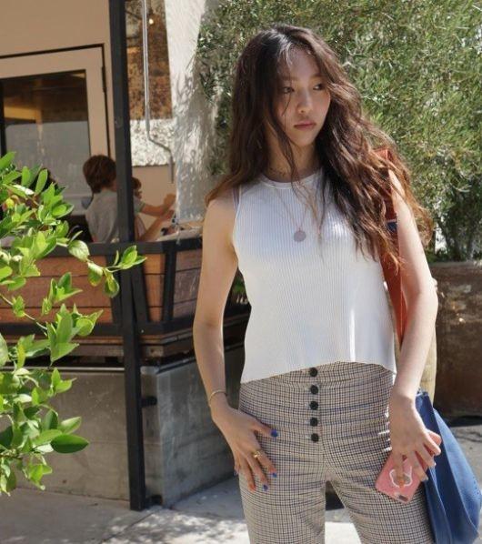 공개된 사진 속 이진이는 흰색 민소매 니트 티셔츠에 체크무늬 바지를 입고 카메라를 응시하고 있다. 그는 엄마인 배우 황신혜를 닮은 우월한 비주얼을 과시하며 시크한 매력을 더해 시선을 사로잡았다.