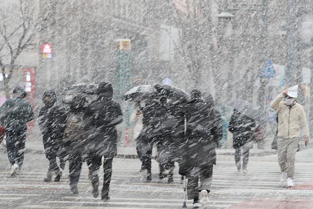 금요일인 29일은 전국 대부분 지역의 아침 기온이 영하권을 밑돌면서 매우 춥겠다. 아침 최저기온은 -18∼-2도, 낮 최고기온은 -6∼4도로 예보됐다. 충청권·전라권·제주도는 흐리고 오전까지 눈이 내리는 곳이 있겠다. 서울과 경기 북부에 대설주의보가 내려진 28일 오전 서울 광화문 네거리 인근에서 시민들이 눈을 맞으며 걸어가고 있다.