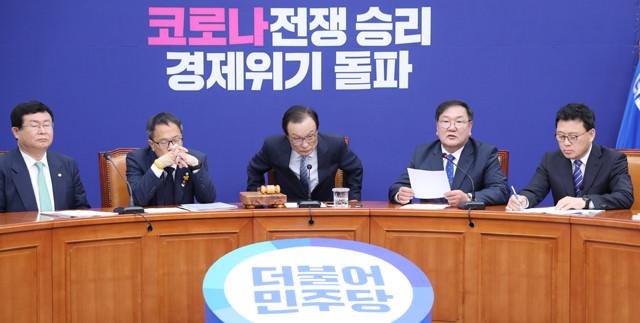 더불어민주당 김태년 원내대표가 25일 오전 서울 여의도 국회에서 열린 최고위원회의에서 발언하고 있다.