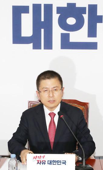황교안 대표가 6 오후 국회에서 긴급 기자간담회를 열고 발언하고 있다.