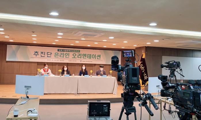 서울 성북구가 최근 '2021년 성북 혁신교육 추진단 온라인 오리엔테이션'을 개최했다. 추진단은 지역내 학생·학부모 등 118명을 모집해 추진단별 15명 내외 총 9개의 사업으로 구성했으며, 이번 오리엔테이션은 유튜브를 통해 실시간 방송됐다. 사진은 오리엔테이션이 진행되고 있는 모습. (사진제공=성북구청)