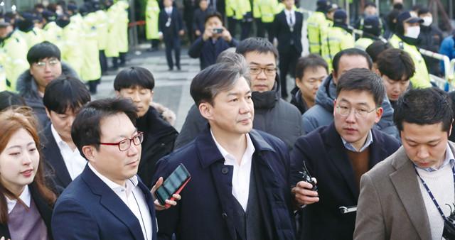 부산시 경제부시장에 대한 청와대 감찰을 무마했다는 의혹으로 검찰 수사를 받아 조국 법무부 장관이 26 서울 송파구 서울동부지법에서 구속 피의자 심문(영장실질심사) 마치고 법정을 나서고 있다.