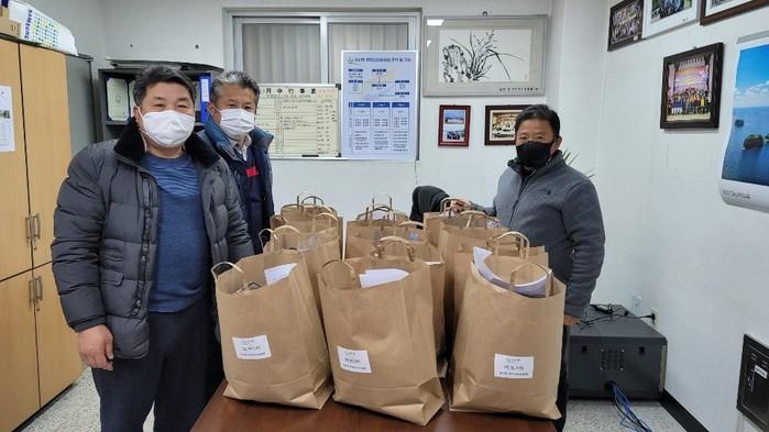 경기 여주시 금사면 주민자치위원회는 23일 재봉자원봉사자들과 코로나19 위기 극복을 위해 제작해온 수제마스크 1200여장을 각 마을에 전달했다. 사진은 주민자치위원회 관계자들이 전달할 수제 마스크를 포장하고 있는 모습. (사진제공=여주시청)