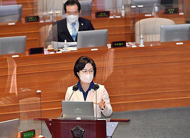 추미애 법무부 장관이 14일 국회 본회의장에서 열린 정치분야 대정부 질문에서 아들의 군 시절 휴가 특혜 의혹과 관련, 보좌관의 전화 통화 여부에 대해 “제가 시킨 일이 없다”며 “보좌관이 실제 전화했는지 여부, 또 어떤 동기로 했는지에 대해 말씀드릴 형편이 못 된다”고 말했다.