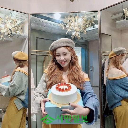 전효성은 SNS에 "이제야 올리는 감동생파 #감사합니다 흑흑"이라는 글과 함께 케이크를 품에 안고 찍은 사진 여러 장을 공개했다.