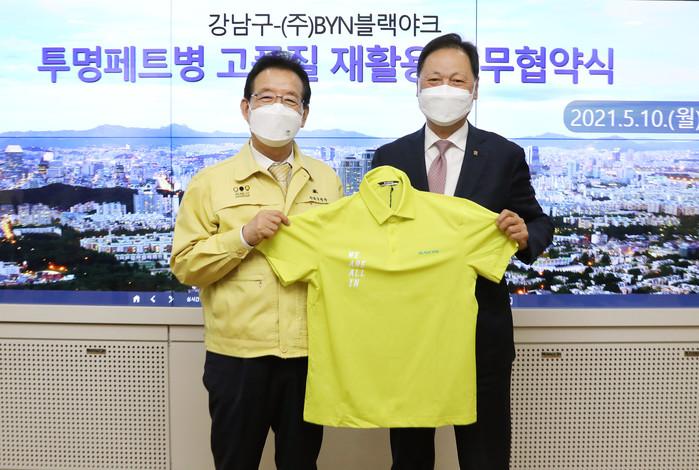 이를 위해 구는 구청 본관 제1작은회의실에서 강남의 투명 폐페트병을 친환경 의류제품으로 만드는 ‘재활용 업무협약’을 체결했다고 11일 밝혔다.