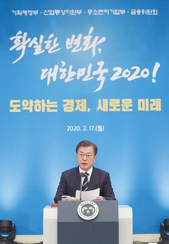 문재인 대통령이 17일 청와대에서 기재부·산업부·중기부·금융위 업무보고 전 발언하고 있다.