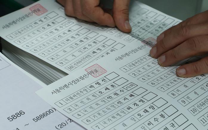 29일 경기도 한 인쇄소에서 4.7 서울시장 보궐선거 투표용지 작업을 하고 있다.