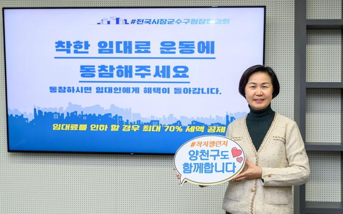 김수영 서울 양천구청장이 착한 임대인 운동이 전국적으로 확대돼 안정적으로 착지되기를 바라는 의미로 진행되는 #착지챌린지(착한 임대료 지원정책)에 동참했다.