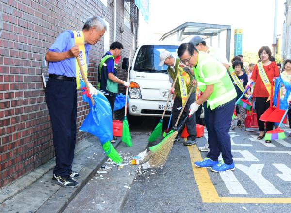 | ▲ 류경기 구청장이 주민들과 청소를 하고 있다. |