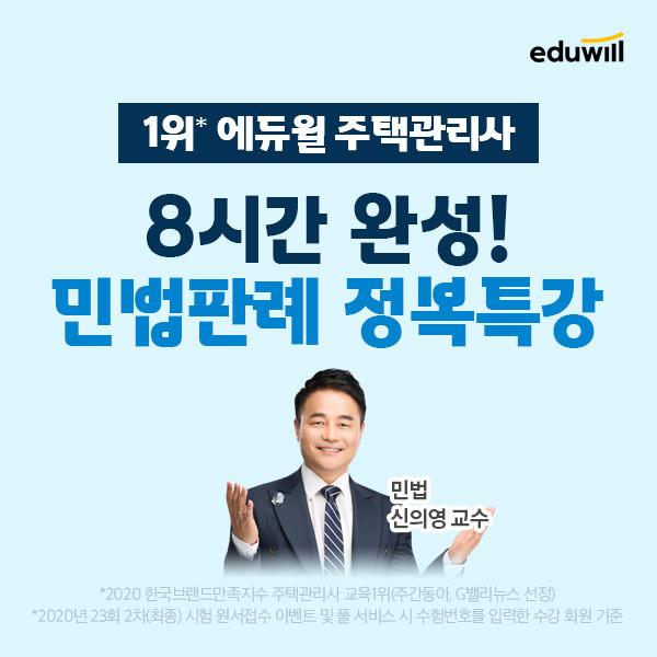 [시민일보 = 여영준 기자] 종합교육기업 에듀윌(대표 박명규) 주택관리사는 2021년 24회 주택관리사 시험을 준비하는 수험생들을 위해 ‘민법판례 정복특강’을 마련하고 수강생을 모집한다고 밝혔다.