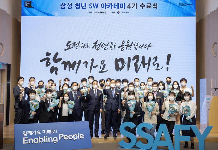[시민일보 = 여영준 기자] 삼성전자가 9일 서울 강남구 멀티캠퍼스 교육센터에서 고용노동부 박화진 차관, 삼성전자 경영지원실 최윤호 사장이 참석한 가운데 '삼성청년SW 아카데미(Samsung Software Academy For Youth, SSAFY)' 4기 수료식을 열었다.