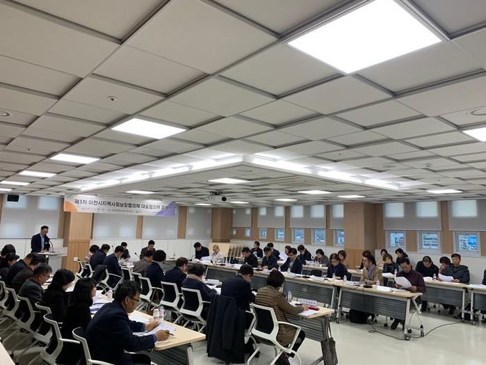 경기 이천시가 21일 중리동 회의실에서 지역사회보장협의체 대표협의체 위원과 관계공무원 등 60여명이 참석한 가운데 '2019년 제3차 대표협의체 회의'를 열고 제4기 지역사회보장계획 2020년 연차별시행계획 등을 심의했다. 사진은 회의가 진행 중인 모습. (사진제공=이천시청)