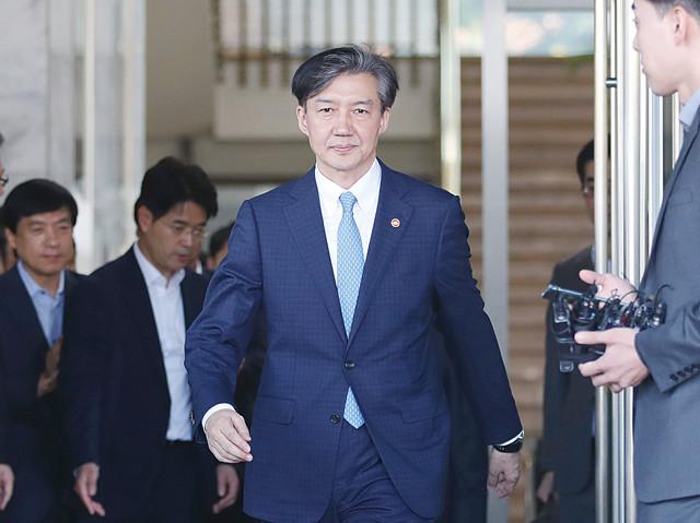 14 부인의 차명 주식투자와 자녀 입시비리 등에 연루된 의혹을 받는 조국 법무부 장관을 소환해 조사 중이라고 밝혔다. 사진은 지난달 14 사의를 밝히고 정부과천청사 법무부를 나서는 조국 법무부 장관.