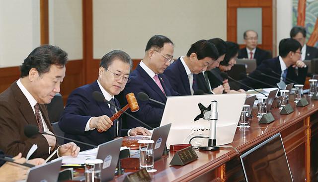 대통령이 3 오전 청와대에서 열린 국무회의에서 회의 시작을 알리고 있다.