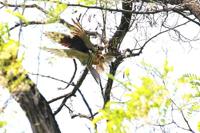 | ▲ 아기 새호리기를 이동하고 있는 새호리기 한쌍. (사진제공=마포구청) |