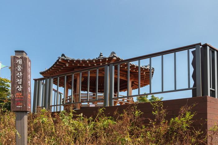 ‘명품구로올레길’ 구간의 일부인 이곳은 주민들이 휴식하기 위해 즐겨 찾는 공간으로, 구는 개웅산 정상에 있는 노후된 기존 전망데크를 철거하고 115㎡ 규모의 새 전망데크를 설치했다.