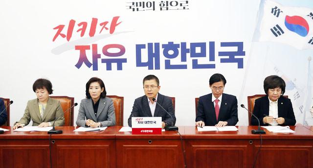 황교안 대표(가운데) 11 오전 국회에서 열린 최고위원회의에서 발언하고 있다.