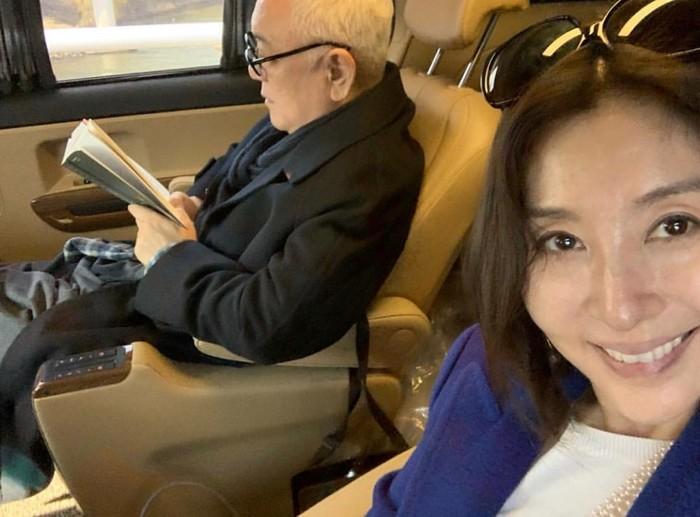 공개된 사진 속 최명길은 자동차 안에서 남편 김한길과 활짝 웃으면서 카메라를 쳐다보고 있는 모습이 담겨 있다.