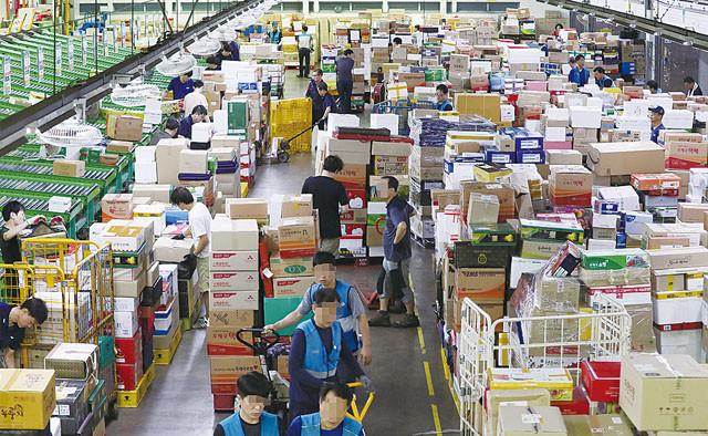 오전 서울 광진구 동서울우편물류센터에서 직원들이 추석을 앞두고 밀려드는 소포와 택배를 처리하기 위해 분주히 움직이고 있다.
