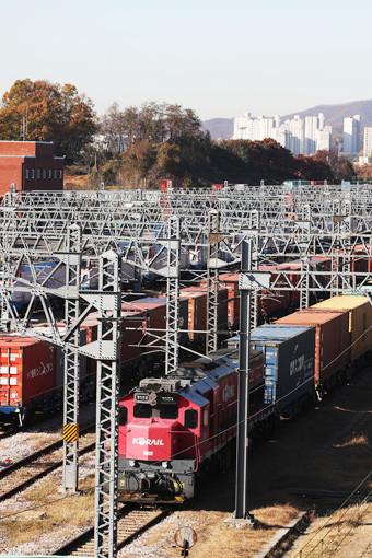 4 2교대’ 근무제 도입을 위한 인력 4000 충원 등을 요구하며 무기한 총파업에 돌입한 20 오전 경기도 의왕시 오봉역에 화물열차가 멈춰서 있다.