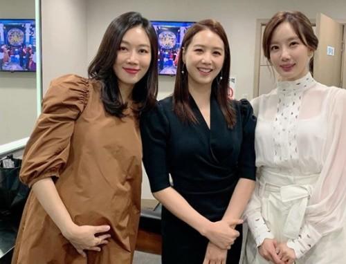 공개된 사진에는 서현진 아나운서가 불룩 나온 배를 손으로 받친 채 이지애, 신예지 아나운서와 나란히 서서 카메라를 바라보고 있다.