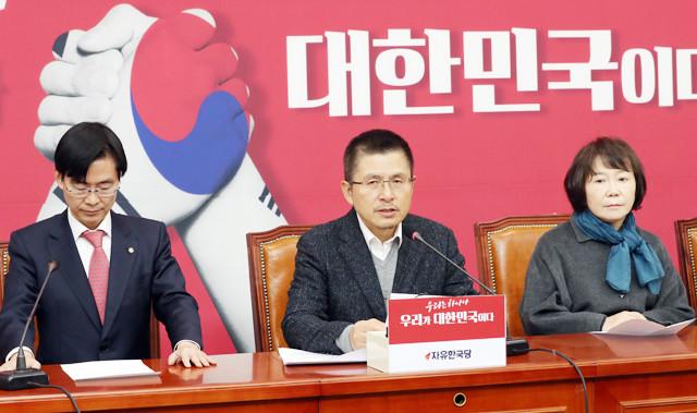 황교안 대표(가운데) 5 오전 서울 여의도 국회에서 열린 최고위원회의에서 발언하고 있다.