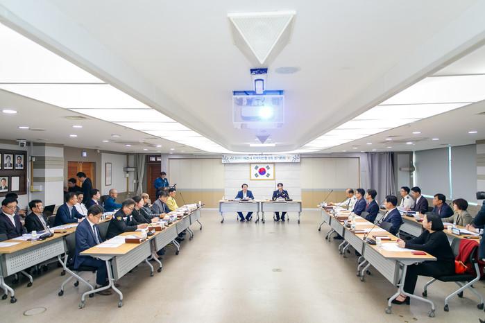 충남 아산시가 최근 시청 상황실에서 '아산시 지역치안협의회' 정기회의를 개최했다. 이날 회의에는 오세현 시장을 비롯한 주요 관련 기관장 및 치안분야 전문가 등이 참석해 지역 안전망 구축을 위한 상호협력방안을 논의했다. 사진은 회의 모습. (사진제공=아산시청)