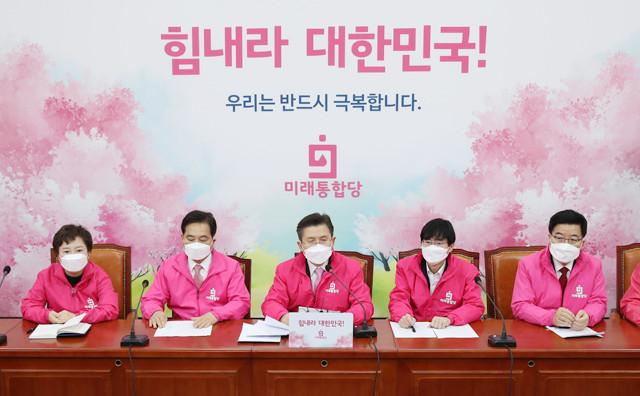 미래통합당 황교안 대표(가운데)가 12일 오전 국회에서 열린 최고위원회의에서 발언하고 있다.
