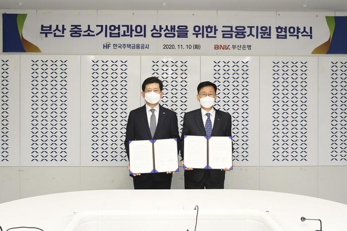 [시민일보 = 여영준 기자] BNK부산은행이 10일 오후 부산국제금융센터에서 한국주택금융공사와 ‘부산 중소기업과의 상생을 위한 금융지원 협약’을 체결했다.
