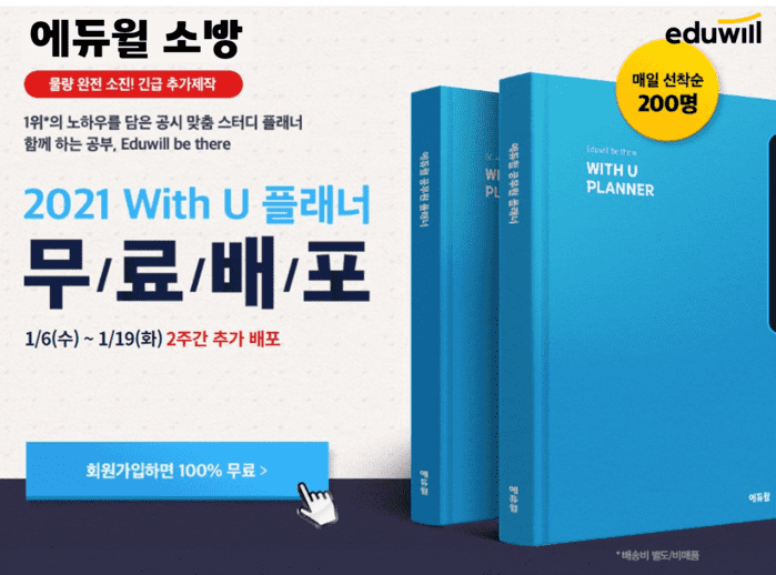 ‘2021 위드유 플래너’ 무료 증정 이벤트에 대한 보다 자세한 내용은 에듀윌 소방 홈페이지를 통해 확인할 수 있다.