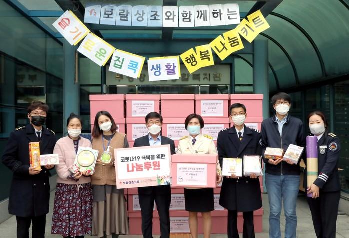 | ▲ 보람상조 사회봉사단이 21일 부평장애인종합복지관과 함께 ‘행복키트’를 전달했다.(사진제공=보람상조) |
