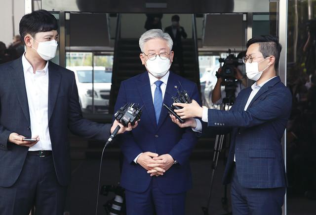 '친형 강제입원'과 관련한 허위사실 공표 혐의에 대해 2심에서 당선무효형을 선고받았다가 대법원의 원심 파기환송으로 지사직을 유지하게 된 이재명 경기도지사가 16일 오후 경기 수원시 경기도청에서 입장을 밝히고 있다. 대법원 전원합의체는 직권남용 권리행사 방해, 공직선거법 위반 등 혐의로 기소된 이 지사의 상고심에서 일부 유죄로 판결한 원심을 깨고 무죄 취지로 사건을 수원고법으로 돌려보냈다고 16일 밝혔다.