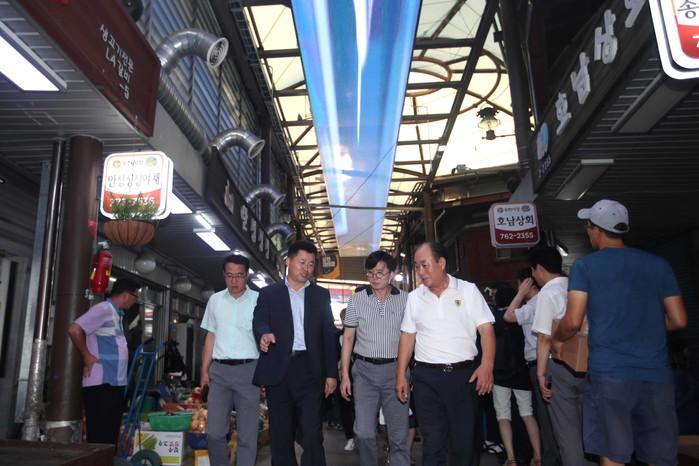 인천 동구는 10일 현대시장과 송현시장에서 전통시장 영세상인의 매출 증대를 도모하고 주민들에게 생필품 등을 저렴하게 구입할 수 있는 기회를 제공하고자 ‘추석맞이 전통시장 가는 날’ 행사를 개최했다. 사진은 시장에 방문한 허인환 구청장의 모습. (사진제공=동구청)