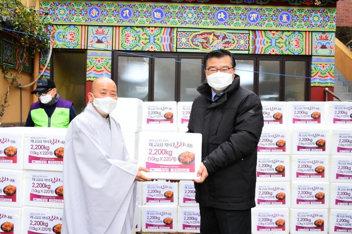 [시민일보 = 여영준 기자] 류경기 중랑구청장이 지난 20일 오전 10시 중랑구 면목3·8동 소재의 한성사(주지스님 법농)에서 열린 ‘제 25회 자비의 김치나눔 행사’에 참석했다.
