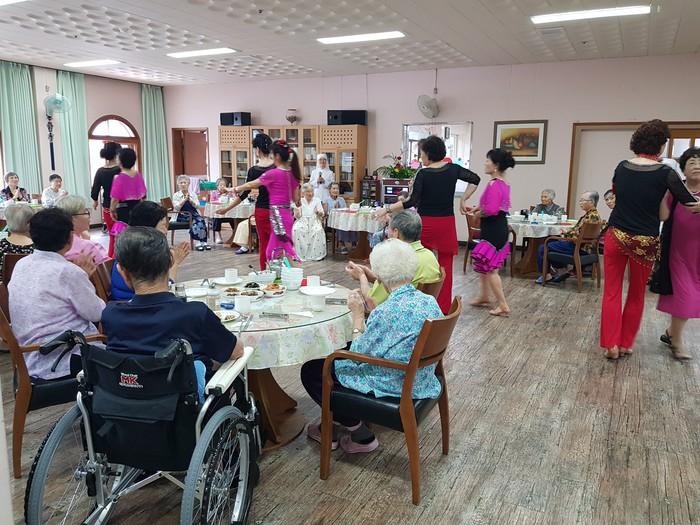 경기 수원시 장안구 조원2동은 지난 9일 평화의모후원을 방문해 생일을 맞은 홀몸노인 5명과 입소노인 등 30여명을 대상으로 ‘사랑의 생신상 차려드리기’ 행사를 진행했다. 사진은 노인들이 동주민자치센터 댄스스포츠팀의 재능기부 댄스공연을 보며 즐거워하고 있는 모습.(사진제공=장안구청)