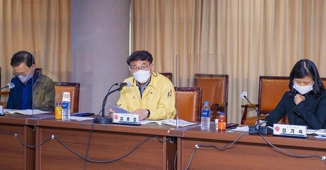 | ▲ 김종효 광주광역시 행정부시장이 19일 오후 시청 중회의실에서 열린 탄소중립도시 추진단 제1차 회의를 주재하고 ‘2021년 탄소중립도시 추진계획’을 논의하고 있다./광주광역시 제공 |