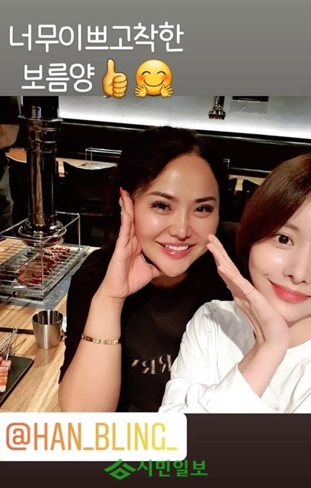 공개된 사진 속 홍선영은 식당에서 한보름과 함께 기념 사진을 찍고 있는 모습이다. 최근 간헐적 단식 다이어트로 몸무게 22kg 감량에 성공한 그의 날렵해진 턱선이 시선을 사로잡았다.