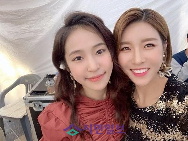 KBS1 예능프로에서 동기동창생 인연으로 이어진 진달래와 홍자가 최근 진안 트로트페스티벌에서 초대가수로 깜짝 만남을 가졌다.