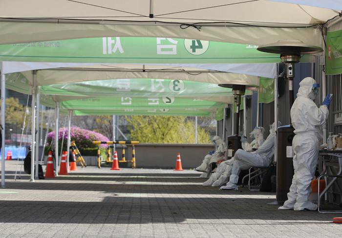 13일 오후 서울 송파구 잠실운동장 주경기장에 설치된 코로나19 드라이브 스루 선별진료소가 한산한 모습을 보이고 있다.
