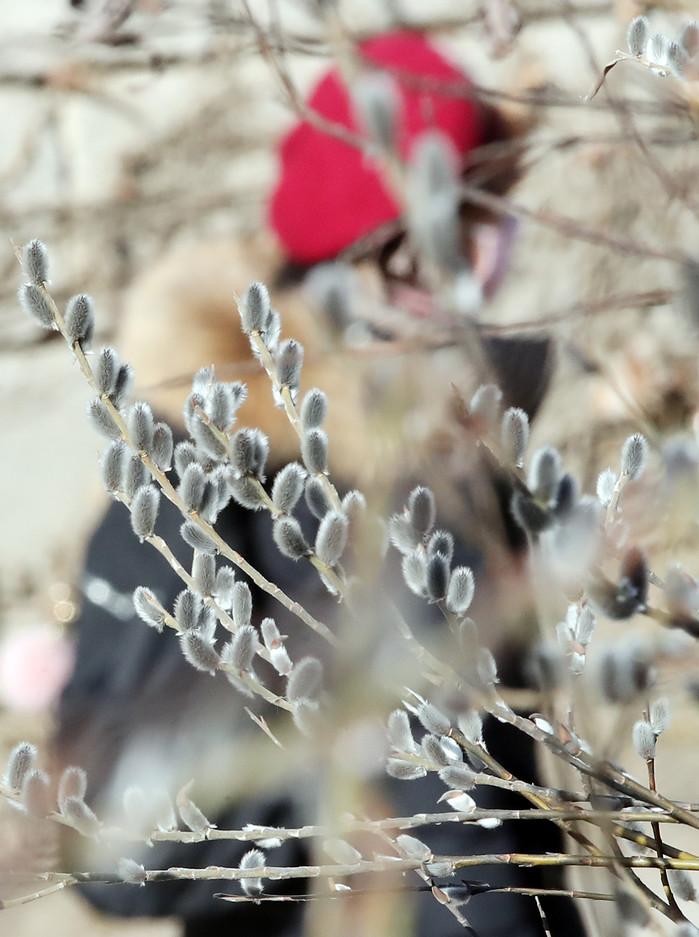 절기상 눈이 녹아 비가 된다는 우수(雨水)인 18일 서울 중구 청계천에 버들강아지가 피어 있다. 기상청은 금요일인 19일 전국이 대체로 맑은 가운데 낮부터 대부분 지역의 기온이 10도 안팎으로 오르면서 추위가 한풀 꺾이겠다고 예보했다.