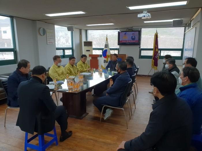 경기 남양주시는 12일 (사)남양주동부중소기업인연합회를 방문해 성생공단내 외국인 근로기업 방역상황을 점검하고, 마스크 5부제 실시에 따른 마스크 구입 및 방역에 관한 애로사항을 청취하는 등의 긴급간담회를 개최했다. 사진은 관계자들이 의견을 나누는 모습.(사진제공=남양주시청)