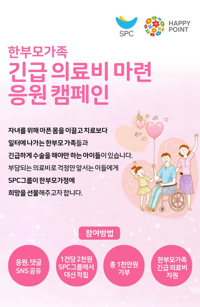 SPC그룹 관계자는 “고객의 참여로 진행되는 ‘해피쉐어캠페인’에 대한 반응이 좋아 의료비 지원이 필요한 한부모 가정을 위한 프로그램을 진행하게 되었다”며, “앞으로도 소외된 이웃들을 꾸준히 지원하는 등 사회공헌 활동에 앞장 설 것”이라고 말했다.