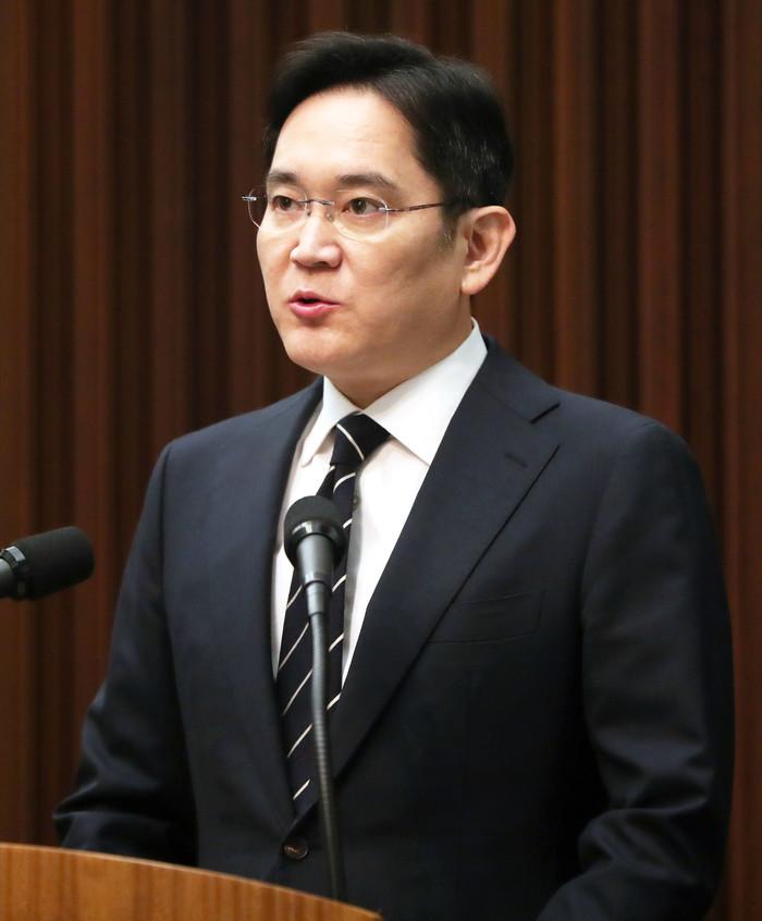 이재용 삼성전자 부회장이 6일 서초동 사옥에서 경영권 승계와 노조 문제 등과 관련해 대국민 사과를 하기 전 인사하고 있다. 이 부회장은 이 자리에서 “제 아이들에게 경영권을 물려주지 않겠다”며 경영권 승계 논란 재발 방지를 약속했다. 아울러 무노조 경영에 대해서도 “삼성에서 ‘무노조 경영’이란 말이 나오지 않도록 하겠다”고 밝혔다. /연합뉴스