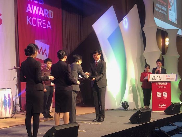 | ▲ 송파구에 위치한 잠실 롯데호텔에서 진행된 ‘웹어워드코리아 2019’ 시상식에서 임현빈 하나카드 신성장R&D사업본부장(가운데)이 ‘LIFE MUST HAVE’로 모바일웹 최고 대상을 수상하고 있다.(사진제공=하나카드) |
