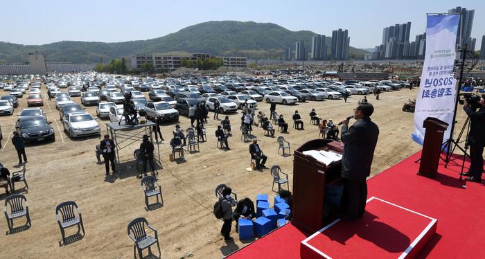 28일 오전 28일 오전 서울 강남구 개포주공1단지 내 개원초등학교에서 개포주공1단지 재건축 조합 관리처분변경총회가 열리고 있다. 이날 총회는 단지 내 공터에서 '드라이브 스루'(DRIVE THROUGH) 형식으로도 진행됐다./연합뉴스
