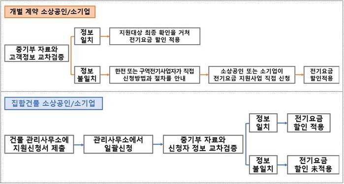 다만, 한전 또는 구역전기사업자가 보유한 고객정보와 중기부 정보가 일치하지 않는 경우, 한전 또는 구역전기사업자가 별도로 안내할 예정이며, 한전 사이버지점 또는 구역전기사업자 이메일·팩스를 통해 별도로 신청(4월7일부터 가능)해야 한다.