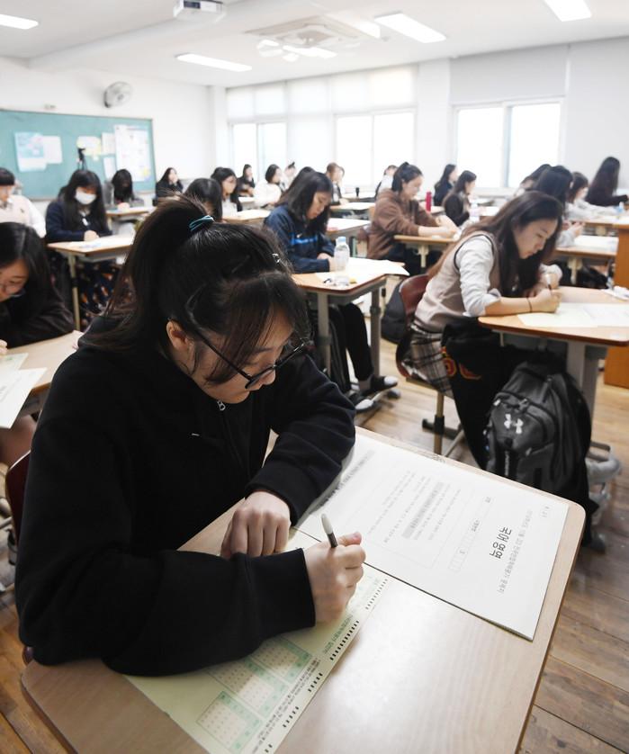 15일 오전 서울 마포구 서울여자고등학교에서 3학년 학생들이 2020학년도 대학수학능력시험 전 마지막 모의고사인 '전국연합학력평가' 진행을 기다리고 있다.